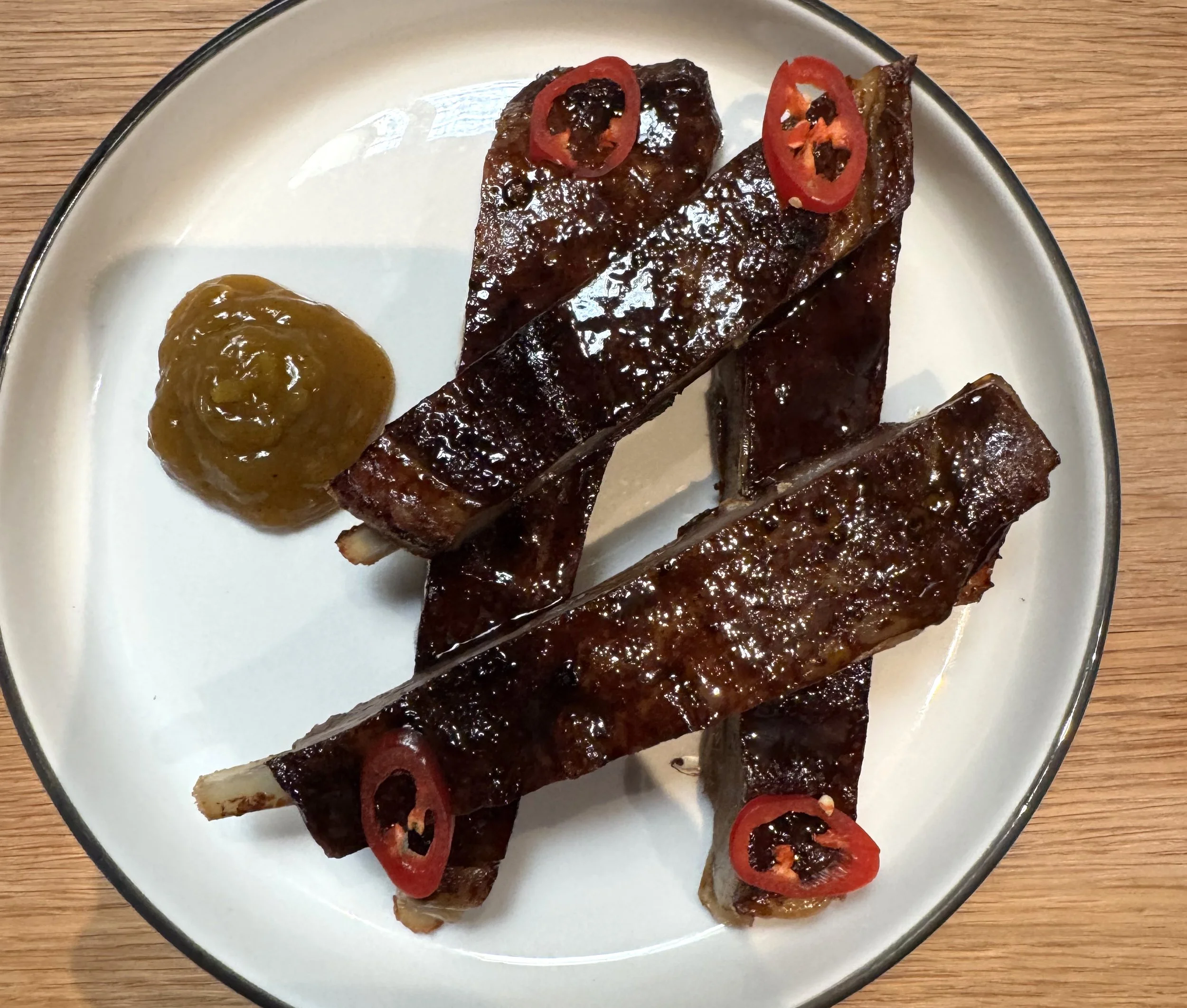 Lamb Ribs, Pomegranate Molasses Glaze, Spiced Green Tomato Chutney